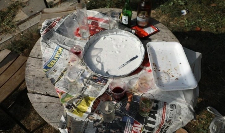 Bolu’da Küçük Sanayi Sitesi’nde bulunan bir parkta kimliği belirsiz kişiler gece boyunca alkol alıp, çöplerini olduğu gibi bıraktılar. Sabah dükkanlarına gelen esnafların, parkta masa ve kamelyaların üzerinde alkol şişeleri, bardaklar, tabaklar ve çöplerle karşılaşmasıyla durum Bolu Belediyesi’ne bildirildi.