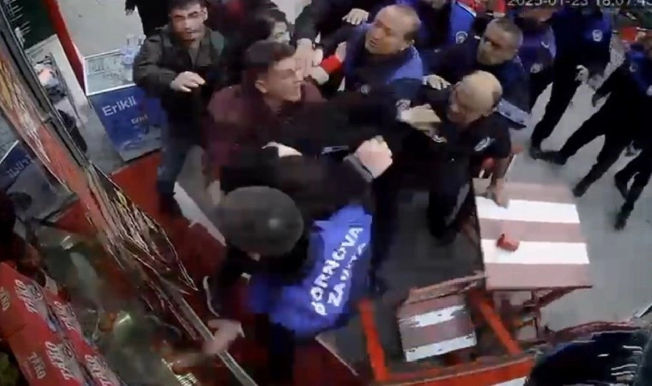 Daha sonra tartışmanın büyümesiyle zabıta ekipleri ve esnaf arasında arbede oluştu. Arbedenin ortasında kalan bir engelli vatandaş yaralandı. O anlar güvenlik kamerasına yansıdı.