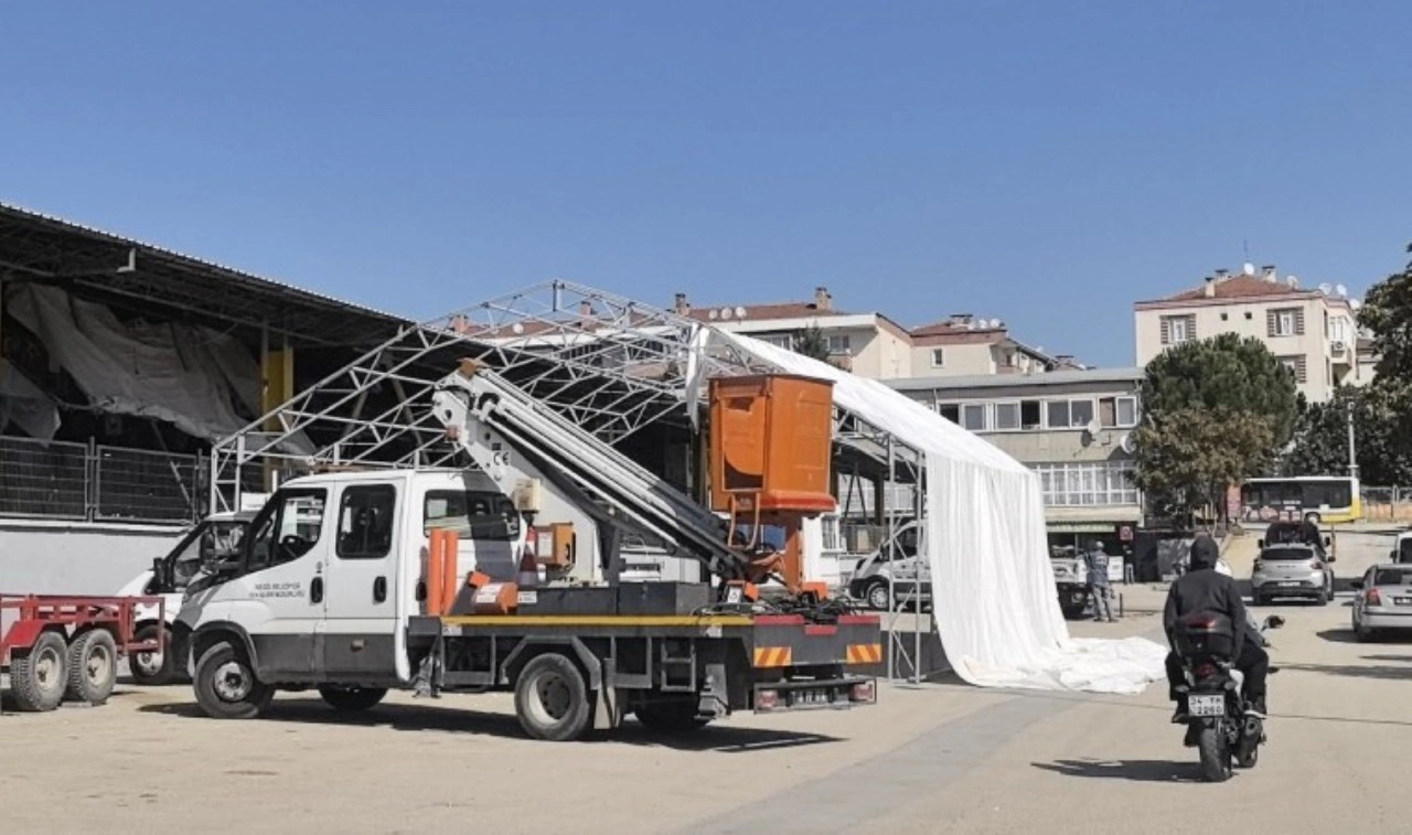 Yarın düzenlenecek Küçükbaş Hayvan Festivali'ne katılacak olan firmanın çalışanı Hüseyin Ö., pazar girişindeki alana firmasına ait branda kurmak istedi.