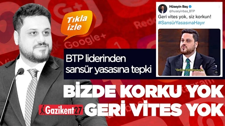 BTP lideri Hüseyin Baş, sansür yasasına tepki olarak yaptığı paylaşımda ‘Bizde korku yok, geri vites yok’ ifadelerini kullandı.