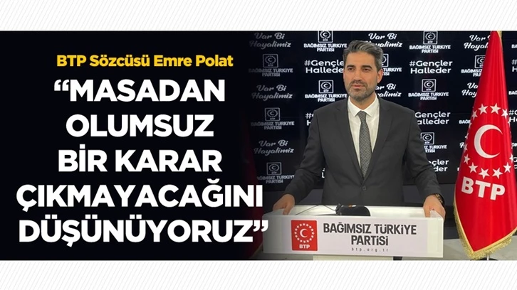 BTP’nin altılı masaya katılım talebi konusunda İYİ Parti Sözcüsünün ifadesiyle Sayın Meral Akşener ve CHP Genel Başkanı Sayın Kemal Kılıçdaroğlu arasında da bir görüşme olduğu belirten Polat, “Biz şunu söylüyoruz; 14 Kasım'da yapılacak olan toplantıdan olumsuz bir sonuç çıkacağını düşünmüyoruz. Bu toplantıdan çıkacak karara saygı duyuyoruz, liderlerin iradesine saygı duyuyoruz. Biz altılı masanın sağduyulu bir karar vereceğini ve buradan olumsuz bir karar çıkmayacağını düşünüyoruz. Zaten hem İYİ Parti tarafından hem de CHP tarafından gelen olumlu açıklamalar da bunu ifade ediyor” dedi.