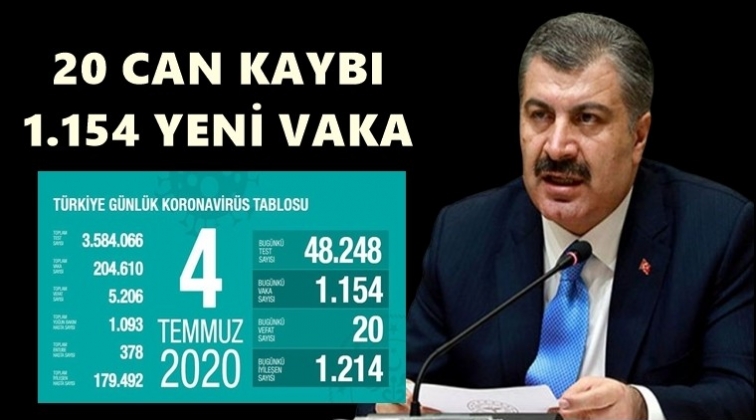 Bugünkü verilere göre, 20 kişi hayatını kaybederken bin 154 yeni vaka tespit edildi.