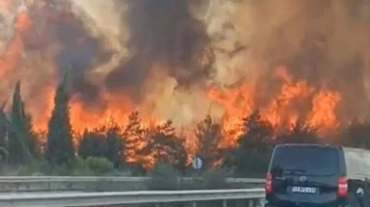 Yangının otoban kenarında hızla büyüdüğü görüldü.