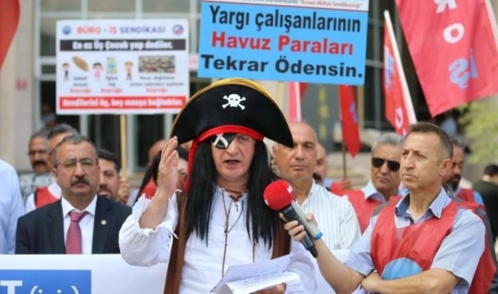 "Korsan" temasıyla yapılan açıklamada sendika Genel Başkanı Alay Hamzaçebi, korsan kıyafeti giydi. Göz bandı, korsan şapkası ve belinde kılıcı ile konuşmaya başlayan Hamzaçebi'ye birçok sendikalı eşlik etti. Sendikalıların ellerindeki dövizlerde, "Yargı çalışanlarının havuz paraları tekrar ödensin, Emeğiniz çok dediler, emeğimizi hiç ettiler, Yargıda kimsenin güvencesi yok, Adaletsizliklerin en büyüğü, adil olmayıp adil gibi görünmektir, Köle değil emekçiyiz" yazıları yer aldı. Eylemde sendikalılar, "İnsanca çalışmak istiyoruz" sloganları attı. Hamzaçebi, yaptığı açıklamada “Her yıl düzenli olarak bugünün önemine istinaden yetkililer tarafından hukukun üstünlüğüne, adalete, yargının bağımsızlığına ve tarafsızlığına ilişkin kulağa hoş gelen mesajlar verilmekte. Oysa durum çok farklı, Türkiye adeta bir korsanlar ülkesi oldu” dedi.