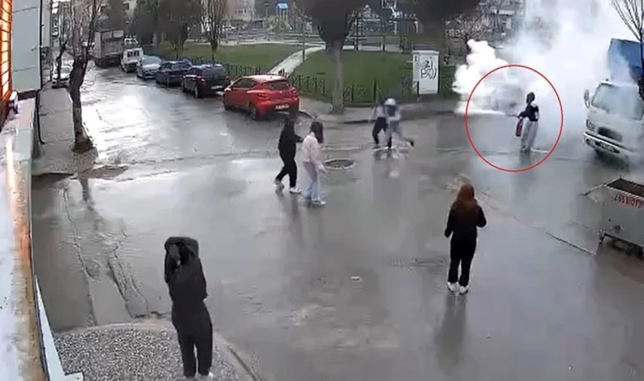 Eskişehir’de bir grup çocuk, camiden çaldıkları yangın tüpünü, birbirinin üzerine sıktı. Çocuklardan biri yoğun karbondioksit gazına maruz kaldığı için bayılırken, arkadaşının yangın tüpündeki gazı sıkmaya devam ettiği anlar güvenlik kamerasına yansıdı.