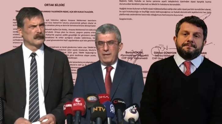 Aşağıda imzası bulunan ve farklı siyasi müktesabatlara sahip olan sekiz siyasi partinin temsilcileri olarak, bu açık hukuksuzluğa ve keyfiyete sessiz kalmayacağımızı ve hukuki-demokratik tepkilerimizi her türlü platformda seslendirme kararında olduğumuzu kamuoyuna duyururuz. Saygılarımızla..."