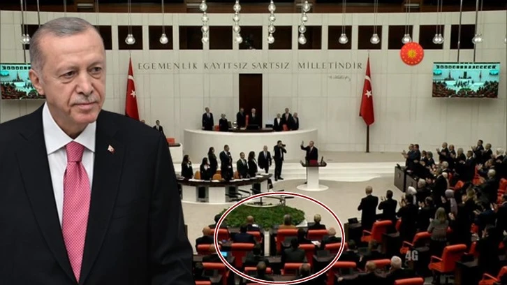 Muhalefet parti milletvekilleri, dün yemin törenini izleme için Meclis'e gelen Erdoğan'ı ayağa kalkmayarak yine protesto etmişti.