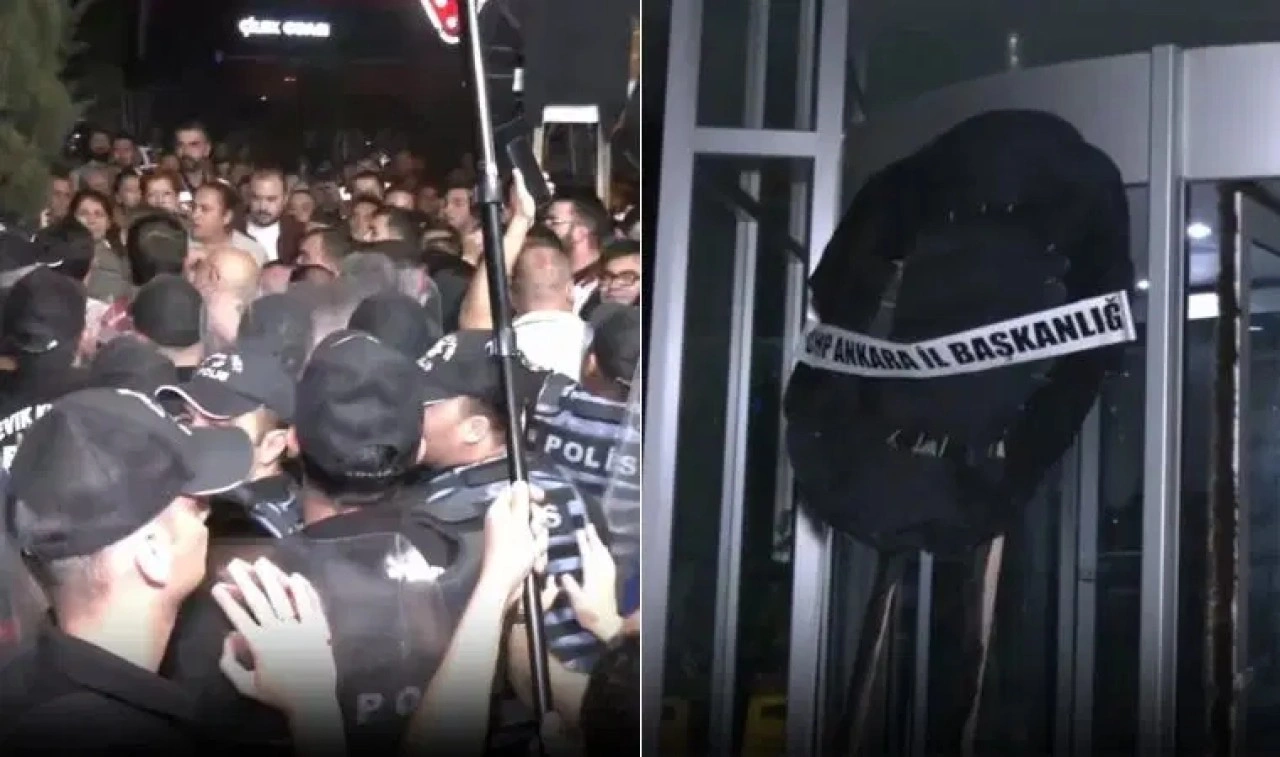 CHP'liler, Akit TV'nin Ankara'da bulunan stüdyosunun önünde basın açıklaması yaptı. Basın açıklamasının ardından İletişim Başkanlığı önüne siyah çelenk bırakmak isteyen kitleye polis izin vermedi.