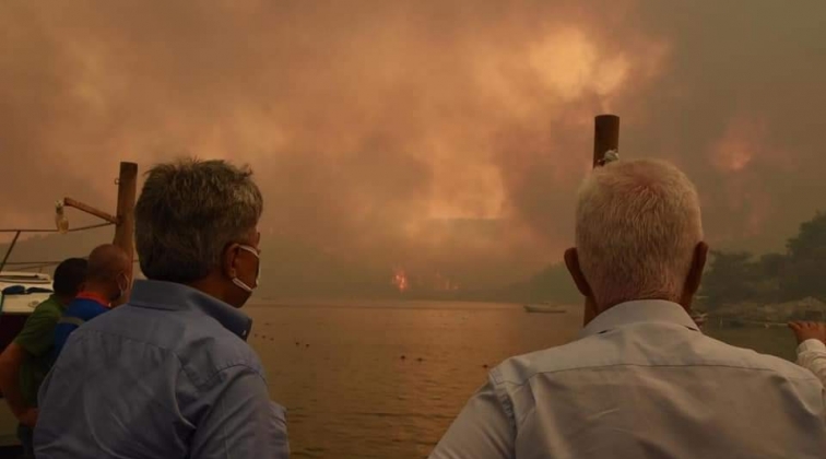 Ahmet Aras, bölgenin cayır cayır yandığını belirterek, "Bizim şu anda yapabileceğimiz tek şey meskun mahalleri korumak. Ağaçları, ormanları koruyamıyoruz" ifadelerini kullandı. Başkan Aras, yayının sonunda alevlerin yaratığı tehlike nedeniyle beraberindekilere "Bir an önce gidelim, çıkalım buradan" dedi.