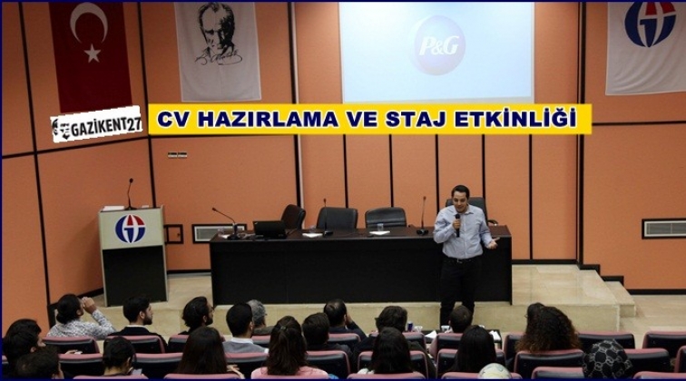 Gaziantep Üniversitesi (GAÜN) Yönetim ve Kariyer Topluluğu ile Procter Gamble (P&G) firması tarafından hazırlanan "Cv Hazırlama ve Staj" etkinliği GAÜN Güzel Sanatlar Fakültesi Konferans Salonunda gerçekleştirildi.
