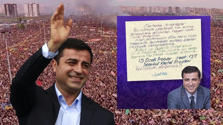 “Merhaba arkadaşlar. Bı süreçte yapılacak her miting geleceğimiz açısından hayati derecede önemlidir. Allah göstermesin ölüm hariç hiçbir mazerete takılmadan mutlaka alanları coşkuyla doldurmalısınız. Emek ve Özgürlük İttifakımızın ilk mitinginde size sürpriz bir armağanımız da olacak. İnşallah seversiniz. 15 Ocak Pazar saat 13.00 İstanbul Kartal Meydanı’nda görüşmek üzere”
