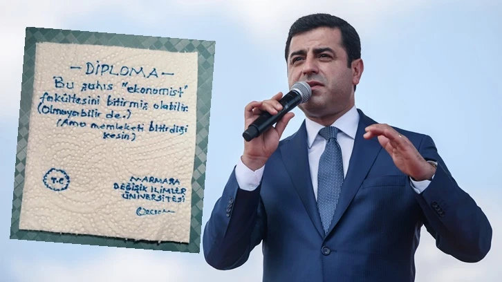 Demirtaş, Twitter'dan yaptığı paylaşımda "diploma" yazılı bir peçete paylaştı. Peçetede "Bu şahıs ekonomist fakültesini bitirmiş olabilir. (olmayabilir de) (ama memleketi bitirdiği kesin) Marmar Değişik İlimler Fakültesi)" ifadesi yer aldı.