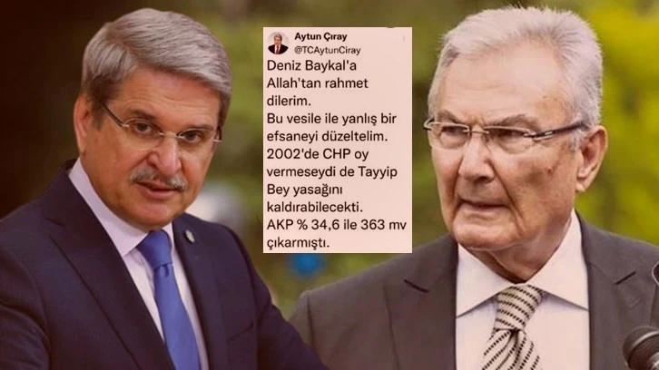 Çıray, “Çok özür dilerim. Deniz Baykal hakkında arkadaşım yanlış bilgiyi iletmiş. Allah uzun ömür versin. Yine de bir efsaneyi düzeltelim. 2002'de CHP oy vermeseydi de Tayyip Bey yasağını kaldırabilecekti. AKP 363 mv çıkarmıştı. 8 bağımsız vardı. Yasağının kalkması için 3 milletvekili yeterliydi.” ifadesini kullandı.