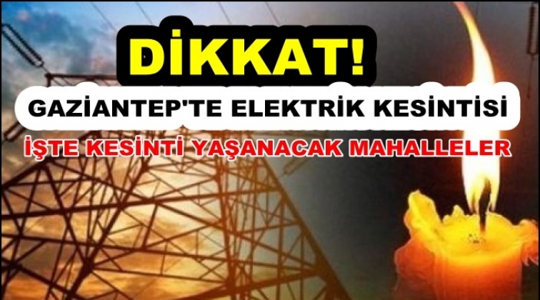 Gaziantep'te altyapı, tesis ve bakım onarım çalışmaları nedeniyle bir çok bölgede elektrik kesintisi yaşanacak.