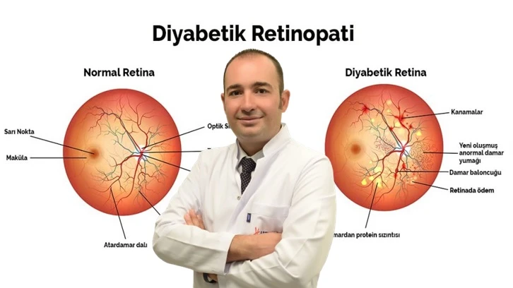 Diyabet hastalarının kan şekeri seviyelerinin olması gerekenden yüksek seviyelere ulaşması ile damar yapısında tahribatlar meydana geldiğinin altını çizen Özel Hatem Hastanesi Göz Sağlığı ve Hastalıkları Uzmanı Doç. Dr. Burak Bilgin ‘. Dolayısıyla vücuttaki bütün damarlar bu durumdan etkilenirken, damar yoğunluğu çok fazla olan göz ve böbrek gibi hassas organlar bu durumdan çok daha fazla zarar görürler. Gözde retina tabakasının beslenmesini sağlayan küçük kan damarlarında hasarlar meydana gelmesi ile birlikte damar dışına sızıntı ve kanamalar başlar. Bu hasarlı ve işlev göremeyen kan damarlarını telafi etmek için yeni damar oluşumları başlar. Fakat bu yeni oluşan damarlar kanamaya ve sızdırmaya çok yatkın oldukları için bu durum yarardan çok, zarar ile sonuçlanır’ dedi.