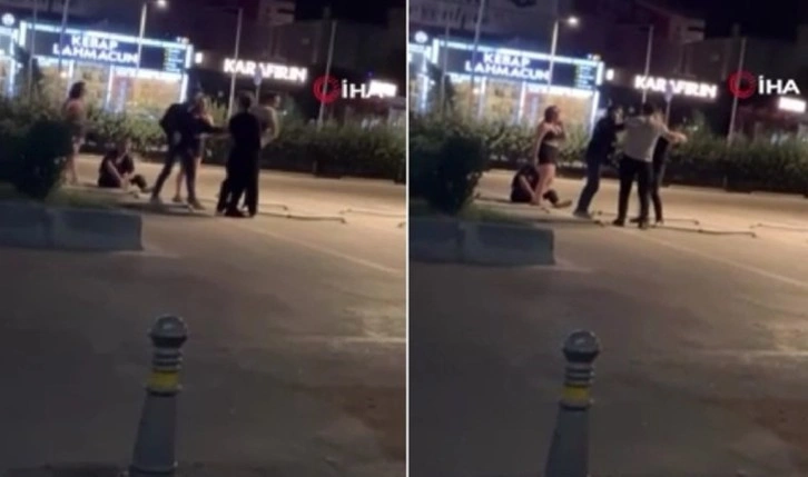 Görüntülerde, kavga eden taraflardan bir kişinin yerdeyken tekmelendiği ve yumruklandığı anlar yer aldı.