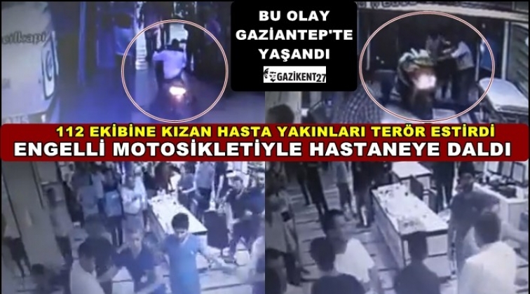 Gaziantep 25 Aralık Devlet Hastanesi'nde hasta yakınları doktor ve çalışanlara saldırırken, engelli bir kişi de motosikletiyle hastaneye daldı.