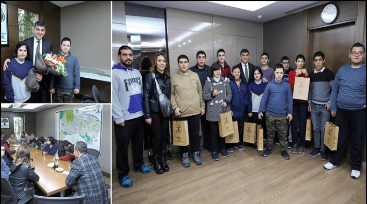 Alleben1 Yüzme Havuzu Engelli Rehabilitasyon Merkezi’nde eğitim gören engelli sporcular, Şehitkamil Belediye Başkanı Fadıloğlu’nu ziyaret etti.