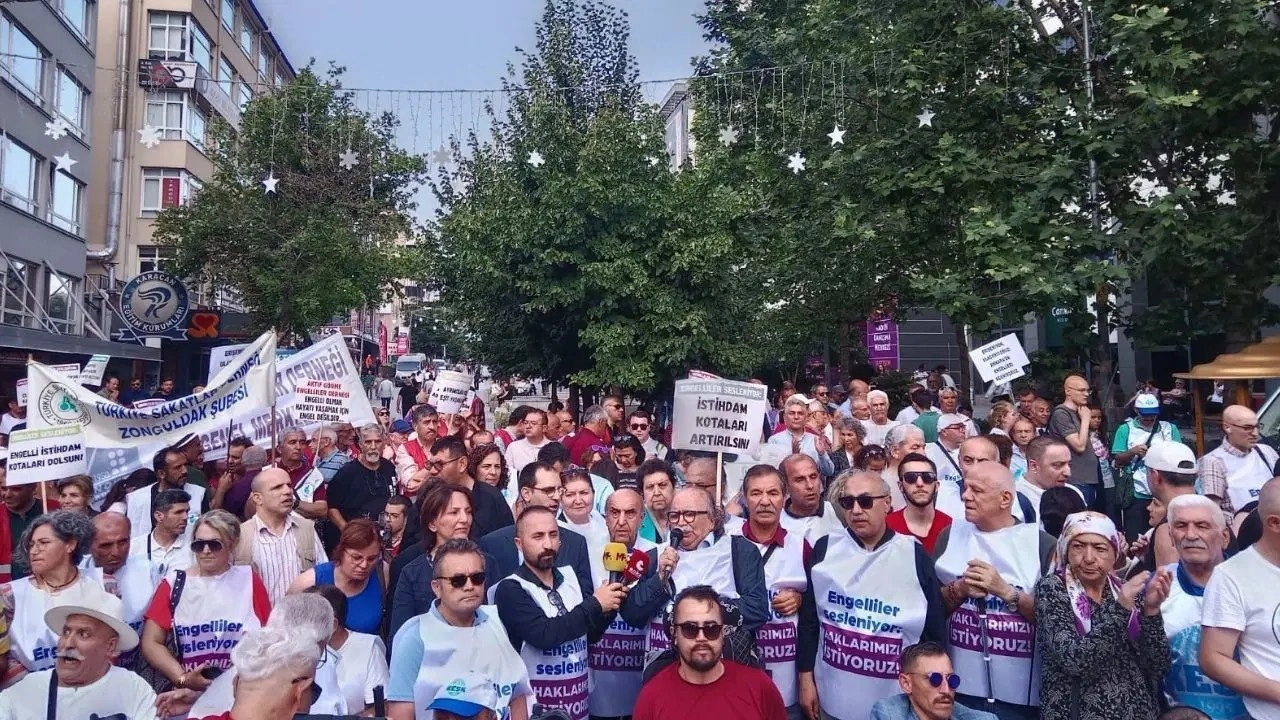 Engelliler, Kolej’de bir araya geldi ve Sakarya Caddesi’ne yürüdü. Yürüyüşte görme, duyma ve zihin engelli yurttaşlar bulundu. CHP Genel Başkan Yardımcısı Aylin Nazlıaka, CHP Ankara Milletvekili Aliye Timisi Ersever ile İYİ Parti, Yeniden Refah Partisi, Yeni Yol Partisi ve DEM Parti'den siyasetçiler katıldı. Eylemciler tarafından Sakarya caddesindeki havuzda basın açıklaması yapıldı. Basın açıklamasından önce Ulu Önder Mustafa Kemal Atatürk, cumhuriyet şehitleri ve yaşamını yitiren engelliler için saygı duruşu ve İstiklal Marşı okundu. Saygı duruşu ve İstiklal Marşı'nın ardından “Saraya değil engelliye bütçe”, “Engelliden değil, itibardan tasarruf”, “Hükümet sesimizi duy” sloganları atıldı.