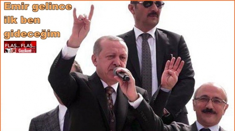 Cumhurbaşkanı Recep Tayyip Erdoğan, AKP Mersin İl Kongresi öncesi salon dışında bekleyenlere seslendi. "Komuta kademesi 'sefer görev emri gelsinler' dedikleri zaman, önce ben sonra da siz beraber gideceğiz." diyen Erdoğan'ın bozkurt işareti yapması dikkat çekti.