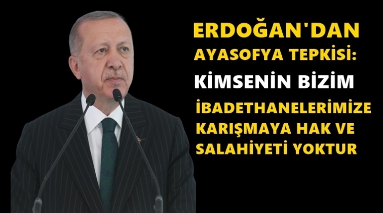 Cumhurbaşkanı Recep Tayyip Erdoğan, Ayasofya'nın ibadete açılması tartışmalarıyla ilgili olarak "Kimsenin bizim ibadethanelerimize karışmaya hakkı yoktur. Ayasofya konusunda ülkemize yöneltilen ithamlar, egemenlik hakkımıza saldırı anlamına gelmektedir" dedi.