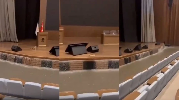 Erdoğan'ın açılışını yaptığı, mimarı AKP Genel Başkan Yardımcısı Çiğdem Karaaslan olan AKP Kongre Merkezi'ni su bastı, sel suları sahneden şelale gibi zemine aktı.https://t.co/mceQKfbMka@emrkongar pic.twitter.com/VGvCiU2ZHR