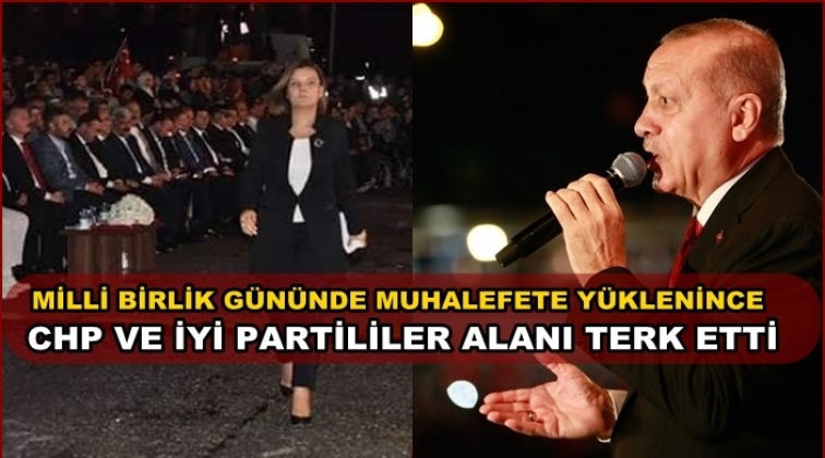 Muhalefete yüklenen Cumhurbaşkanı Erdoğan’a tepki olarak Kocaeli’deki törene katılan CHP ve İYİ Partililer alanı terk etti.