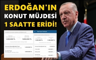 Erdoğan'ın, 'müjde'si aslında konut alacaklar için değil, satacaklar için müjde oldu. Bir alım satım sitesine ilan veren sahibi, Erdoğan'ın açıklamasından bir saat bile geçmeden satışa sunduğu konutun fiyatını tam 200 bin lira artırdı. Böylece Erdoğan'ın verdiği 'müjde'nin erimesi 1 saat bile sürmedi.