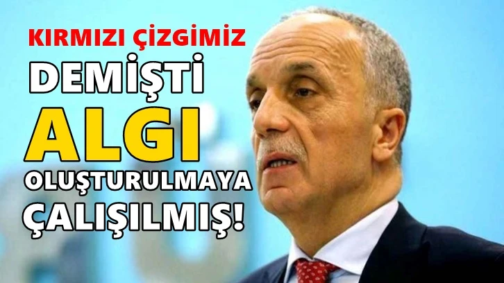 Türk-İş Genel Başkanı Ergün Atalay'ın 4 kişilik bir ailenin açlık sınırı olarak açıklanan 7 bin 785 lirayı asgari ücret görüşmesinde “kırmızı çizgileri” göstermesi tepki çekmişti. Atalay, yeni yaptığı açıklamada, "Algı oluşturulmaya çalışıldı" dedi.