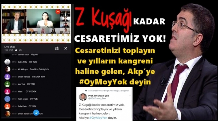 Twitter hesabından #OyMoyYok etiketiyle paylaşımda bulunan Şen, "Z Kuşağı kadar cesaretimiz yok. Cesaretinizi toplayın ve yılların kangreni haline gelen, Akp’ye #OyMoyYok deyin." dedi.