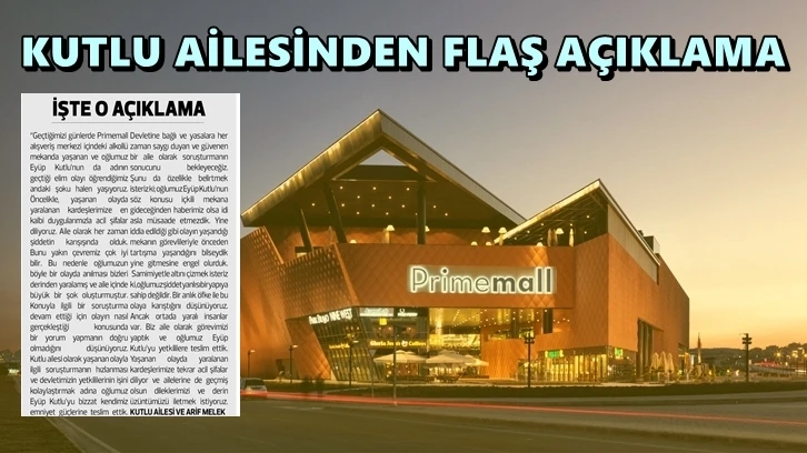 Gaziantep’te faaliyet gösteren Primemall alışveriş merkezi içindeki alkollü mekanda yaşanan silahlı kavgaya adı geçen Eyüp Kutlu'nun ailesi kamuoyuna yazılı bir açıklama yaparak, evlatları Eyüp Kutlu'yu kendi elleriyle emniyet güçlerine teslim ettiklerini ve yaşanan elim olay nedeniyle büyük üzüntü duyduklarını ifade ettiler.