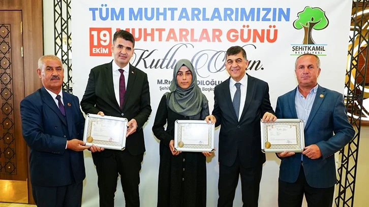 Şehitkamil Belediye Başkanı Rıdvan Fadıloğlu, 19 Ekim Muhtarlar Günü dolayısıyla tüm muhtarlara hediye takdiminde bulundu. Program, çekilen hatıra fotoğrafı ile sona erdi.