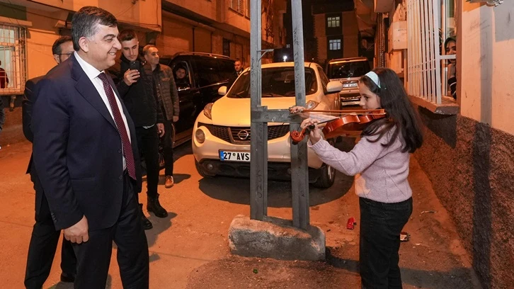 Asmin ve Tuana’nın babası Kadir Korkusuz, kızlarının isteği üzerine teşekkür etmek için Cumhur İttifakı’nın Şehitkamil Belediye Başkan Adayı Rıdvan Fadıloğlu’nu evine davet etti. Başkan Fadıloğlu’nu kapıda keman çalarak karşılayan Asmin, ziyaret dolayısıyla çok mutlu olduğunu ve sevindiğini dile getirdi.