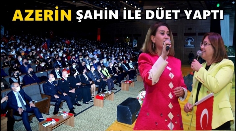 Gaziantep Büyükşehir Belediyesi (GBB) tarafından düzenlenen 29 Ekim Cumhuriyet Bayramı Özel Konseri’nde ünlü sanatçı Azerin, “Çırpınırdı Karadeniz” adlı parçayı GBB Başkanı Fatma Şahin ile okudu.