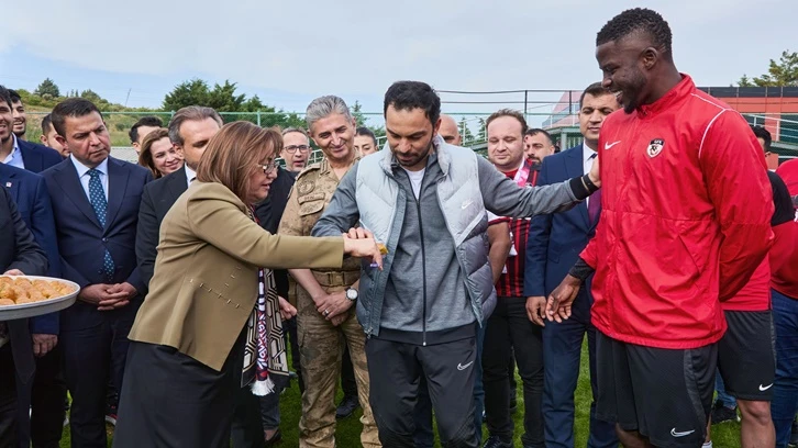 Gaziantep FK’nın oyuncu kadrosuyla Fatih Karagümrük maçı öncesi antrenman sahasında bir araya gelen Gaziantep Büyükşehir Belediye Başkanı Fatma Şahin, oyunculara moral konuşması yaparak, baklava ikram etti.