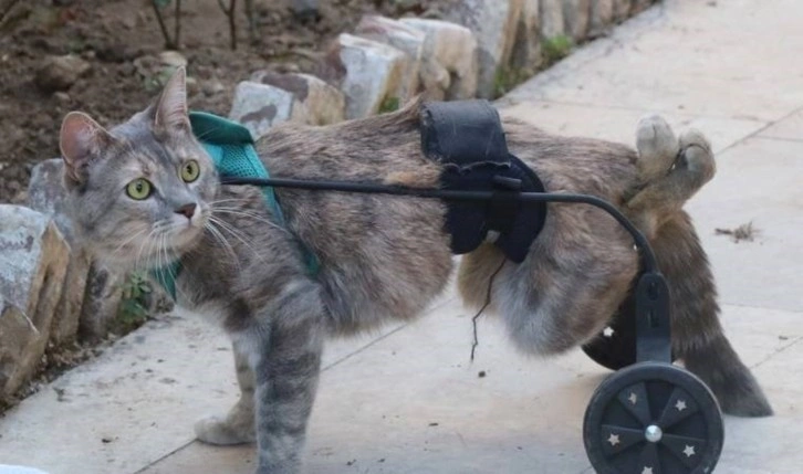 İş yerinin etrafında ayrıca 10 kediye de baktığını belirten Şahin Bozdağ, "Bir hayvansever olarak bir kediyi hayata bağlamaya çalıştım. Apartmanın 7'nci katından düşüp, arka bacakları felç olunca gözümüzün önünde sürünerek gitmeye çalışıyordu. İçimiz parçalanıyordu. Sosyal medyada felçli kalan hayvanların yürüteçlerle yürüdüğünü görünce ben de kedimiz için yapmaya karar verdim. Kendim atölyemde tasarlayıp, yaptım. Kediye takıp, yürüttük. Daha alışma sürecinde zorluk çekiyor; ancak böyle hayata tutundu. Şimdi kedimiz daha mutlu" dedi. Ayşe Ekinci ise 'Efe'yi 7 yıl önce bir sokak kedisinin yavrusuyken sahiplendiklerini belirtip, "Onu yürürken görünce mutlu oluyoruz" diye konuştu.