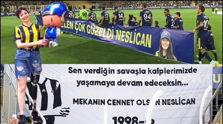 ''Sen verdiğin savaşla kalplerimizde yaşamaya devam edeceksin.. Mekanın Cennet Olsun Neslican… 1998- ?'' Öte yandan Fenerbahçeli taraftarlar ''Neslican Ölmedi Kalbimizde Yaşıyor'' şeklinde tezahüratlarda bulundu.