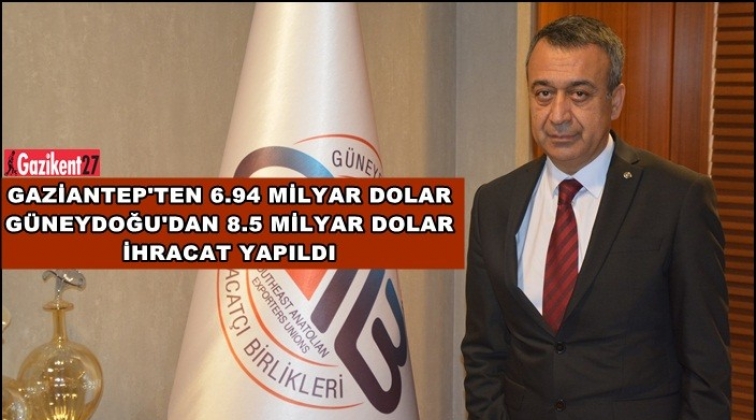 Güneydoğu Anadolu Bölgesinin lokomotif ili olan Gaziantep ihracatının 2018 yılı Ocak-Aralık döneminde önceki yılın aynı dönemine kıyasla % 5,6 artışla toplam 6 milyar 939 milyon dolara ulaştığı ve bu rakamlarla Türkiye’nin en çok ihracat yapan altıncı ili konumundaki yerini koruduğu ifade edildi. Gaziantep’in ihracatında ön sıralarda tekstil ve hammaddeleri, halı, hububat-bakliyat, yağlı tohumlar ve mamulleri, kimyevi maddeler ile ağaç ve orman ürünleri sektörlerinin geldiği belirtildi.