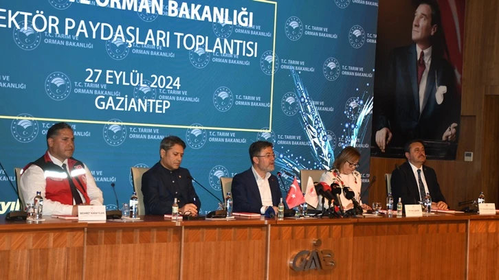 Tarım ve Orman Bakanı İbrahim Yumaklı’nın Gaziantep programı çerçevesinde düzenlenen toplantıya ilgi büyük oldu. Toplantıya, AK Parti Grup Başkanvekili Abdulhamit Gül, Büyükşehir Belediye Başkanı Fatma Şahin, AK Parti Gaziantep Milletvekili Ali Şahin, İlçe Belediye Başkanları, TİM Başkan Vekili ve Güneydoğu Anadolu İhracatçı Birlikleri (GAİB) Koordinatör Başkanı Ahmet Fikret Kileci, Güneydoğu Anadolu Hububat Bakliyat Yağlı Tohumlar ve Mamulleri İhracatçıları Birliği Başkanı Celal Kadooğlu, Güneydoğu Anadolu Halı İhracatçıları Birliği Başkanı Zeynal Abidin Kaplan, Güneydoğu Anadolu Hububat Bakliyat Yağlı Tohumlar ve Mamulleri İhracatçıları Birliği Başkan Yardımcısı Mesut Acar, Oda ve dernek başkanları, Bakanlık bürokratları ve sektör paydaşları katıldı.