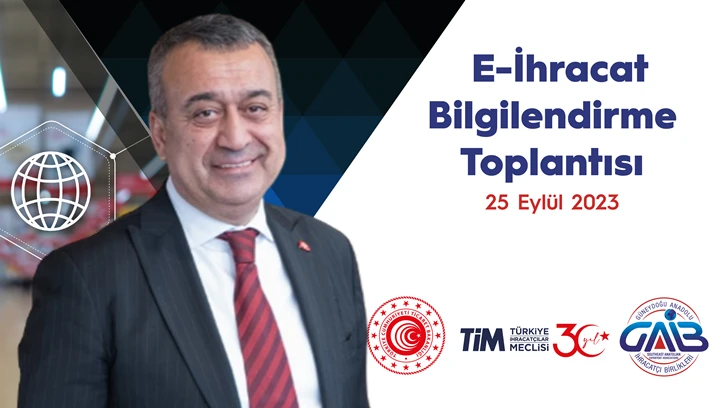 Ticaret Bakanlığı koordinasyonunda, Güneydoğu Anadolu İhracatçı Birlikleri (GAİB) ve Türkiye İhracatçılar Meclisi (TİM) E-İhracat Sekreteryası iş birliği ile 25 Eylül 2023 pazartesi günü GAİB Hizmet Binasında E-İhracat bilgilendirme toplantısı düzenlenecek.