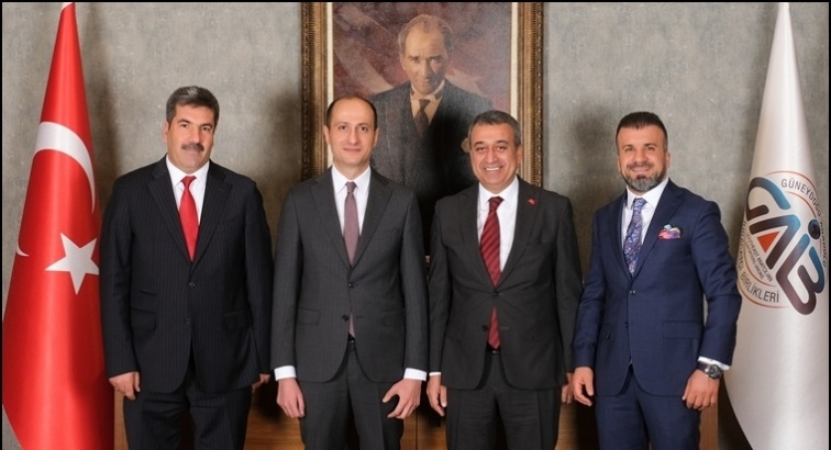 Güneydoğu Anadolu İhracatçıları Birliği bünyesinde faaliyet gösteren İhracatçı Birliklerinin seçimli genel kurulları tamamlandı. Seçimli Genel Kurulların tamamlanmasının ardından toplanan Başkanlar Kurulunda yeni dönem Koordinatör Başkanı ve Başkan Yardımcısı belirlendi. GAİB hizmet binasında gerçekleştirilen ilk Başkanlar Kuruluna; Güneydoğu Anadolu Kuru Meyve ve Mamulleri İhracatçıları Birliği Başkanı Mehmet Çıkmaz, Güneydoğu Anadolu Halı İhracatçıları Birliği Başkanı Zeynal Abidin Kaplan, Hububat Bakliyat Yağlı Tohumlar ve Mamulleri İhracatçıları Birliği Başkanı Celal Kadooğlu ve Güneydoğu Anadolu Tekstil ve Hammaddeleri İhracatçıları Birliği Başkanı Ahmet Fikret Kileci katıldı. Yapılan toplantıda bir önceki dönemde Koordinatör Başkanlık görevini sürdüren Ahmet Fikret Kileci’nin yeni dönemde de görevine Koordinatör Başkan olarak devam etmesine karar verildi. Yine bir önceki dönemde Koordinatör Başkan Yardımcılığı görevini sürdüren Mehmet Çıkmaz’ın da aynı göreve devam etmesi uygun görüldü. Toplantının sonunda dört başkan bir arada fotoğraf çektirerek birlik ve beraberlik mesajı verdi.