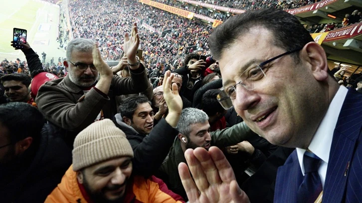 Tribünde kendisinin yanına gelenlerle bir süre sohbet edip maçı takip eden İmamoğlu daha sonra ise Galatasaraylı taraftarlara üçlü çektirdi