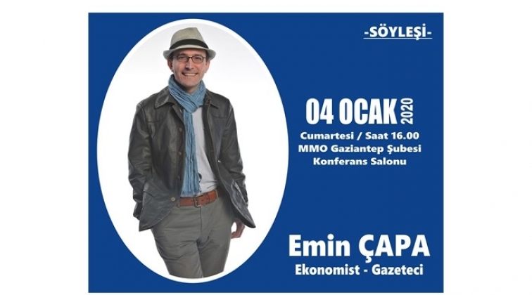 Ekonomist Gazeteci Emin Çapa, Makina Mühendisleri Odası (MMO) Gaziantep Şube Başkanlığı'nın düzenlediği 'Yeni Dünya ve Yeni İnsan' konulu söyleşinin konuğu olarak Gaziantep'e geliyor.