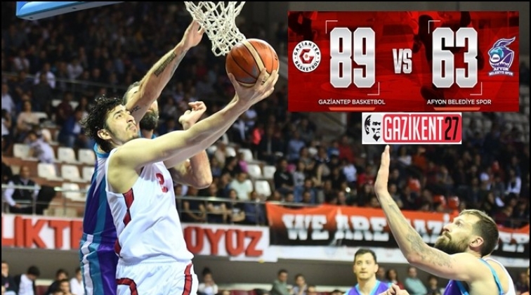 Tahincioğlu Basketbol Süper Ligi'nin 29'uncu haftasında Gaziantep Basketbol, sahasında konuk ettiği Afyon Belediyespor'u 89-63 mağlup etti.