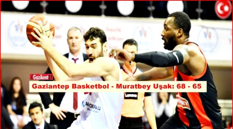 Tahincioğlu Basketbol Süper Ligi'nin 24'üncü haftasında Gaziantep Basketbol, sahasında konuk ettiği Muratbey Uşak’ı 68-65 mağlup etti.