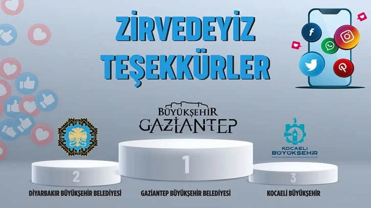 Gaziantep Büyükşehir’i Diyarbakır Büyükşehir Belediyesi ve Kocaeli Büyükşehir Belediyesi takip etti. Ankara Büyükşehir Belediyesi 4’üncü, İstanbul Büyükşehir Belediyesi 5’inci, İzmir Büyükşehir Belediyesi ise listede 6’ncı sırada yer aldı.