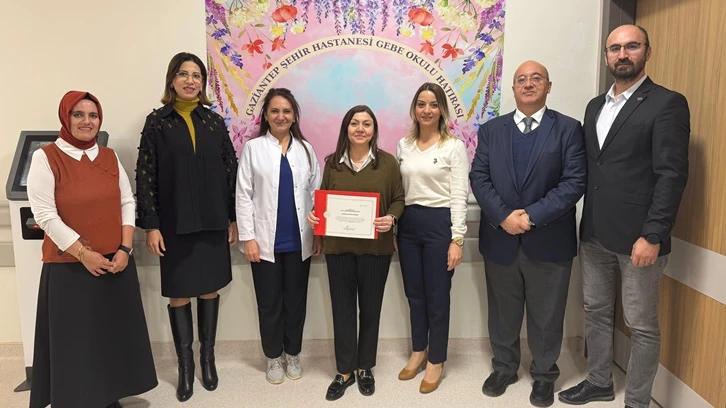 Gaziantep’te binlerce gebeye ücretsiz eğitim ve rehberlik sunacak Gebe Okulunun tescil belgesi, Gaziantep İl Sağlık Müdürlüğü Kamu Hastaneleri Hizmetleri Başkanı Uzm. Dr. Emine Korkmaz, Başkan Yardımcısı Dr. Cihat Rifat Yılmazer ve Halk Sağlığı Hizmetleri Başkan Yardımcısı Doç. Dr. Mikail Özdemir tarafından Gaziantep Şehir Hastanesi Başhekimi Prof. Dr. Ilgın Türkçüoğlu’na takdim edildi.