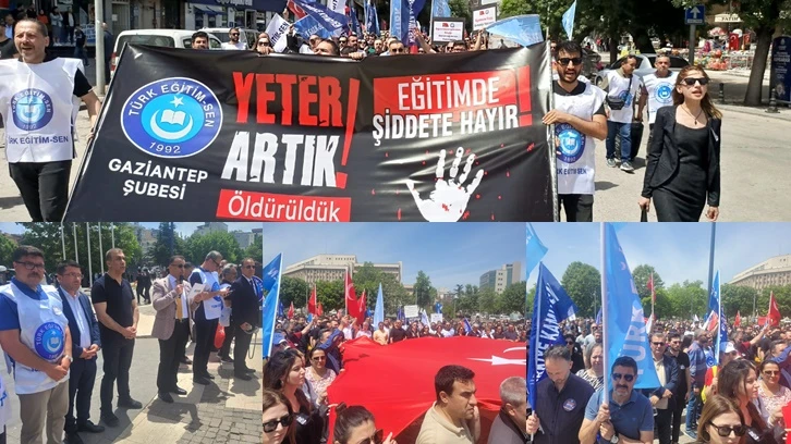 Türk Eğitim Sen Gaziantep Şube Başkanı Bekir Avan, “Şiddete yönelik önlem almanız için daha kaç eğitimcimizi yitireceğiz? Artık yeter! Eğitimde şiddet yasası çıkarılsın” dedi.