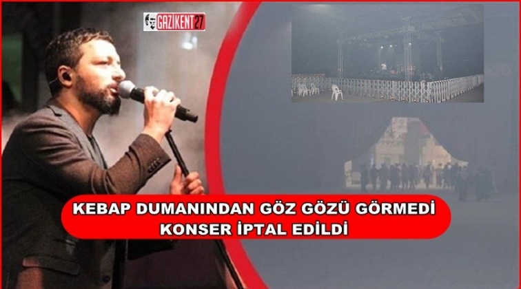Gaziantep Tanıtım Günleri'nde kapalı fuar alanında kebap yapılırken oluşan duman her yeri kaplayınca Mehmet Erdem'in vereceği konser iptal edildi.