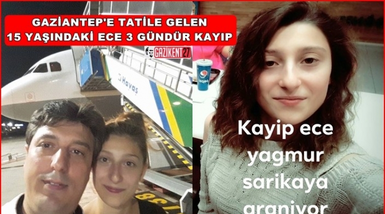 İstanbul'dan tatil için Gaziantep'teki akrabalarına gelen 15 yaşındaki lise öğrencisi Ece Yağmur Sarıkaya'dan 3 gündür haber alınamıyor.